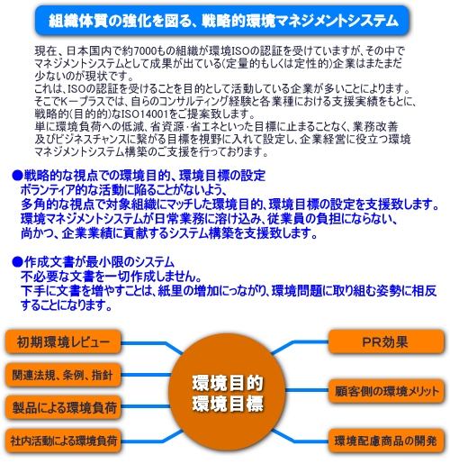 - ISO4001…環境負荷を減らす工夫を継続的に改善するシステムが存在することを証明する規格。